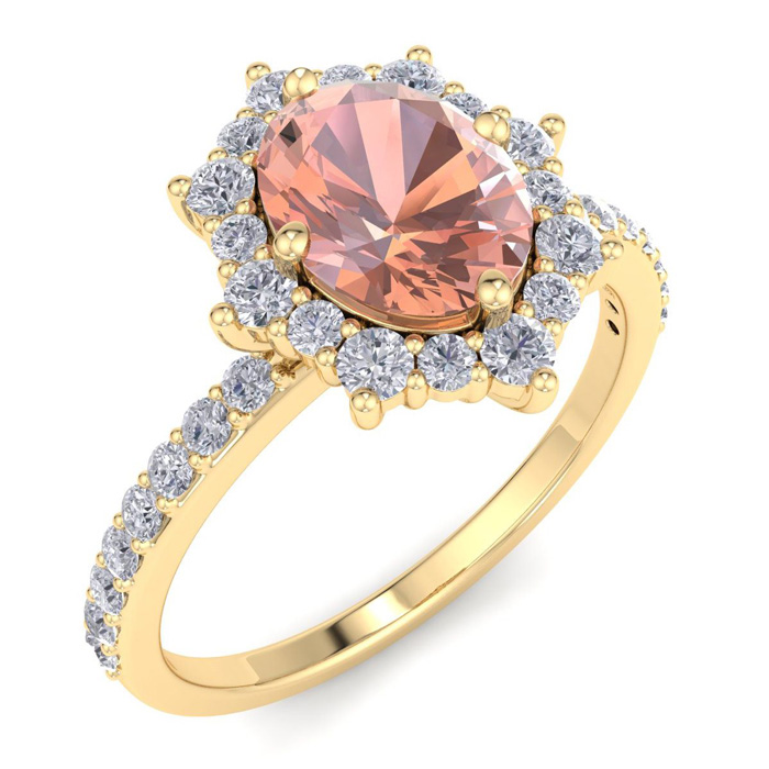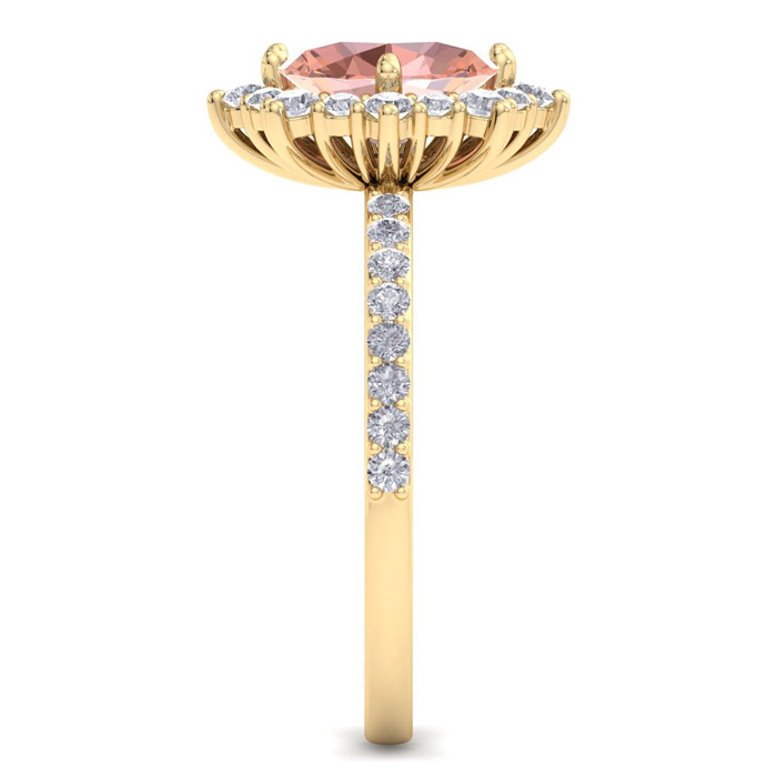 Retrograde Birthstones™ 1-1/2 Carat Oval Shape Morganite and Diamond Ring In 14K Yellow Gold
