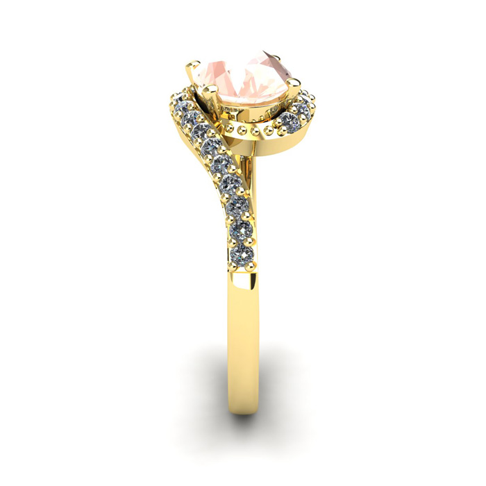 1-1/2 Carat Oval Shape Morganite and Halo Diamond Ring In 14 Karat Yellow Gol