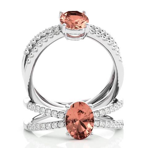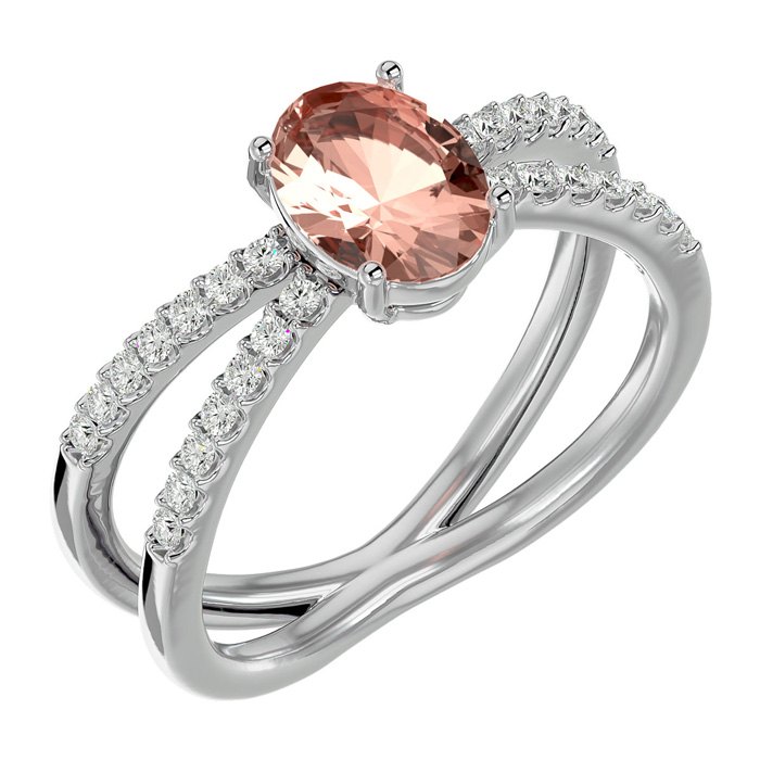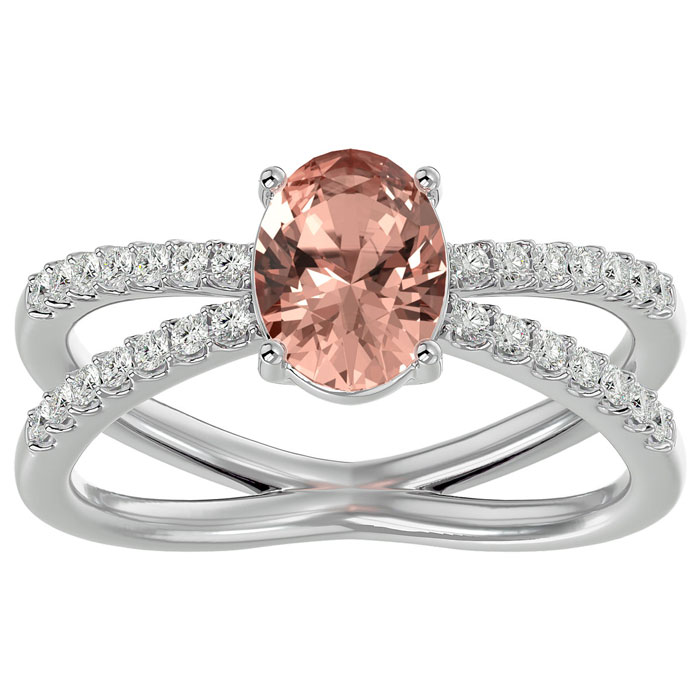 1-1/3 Carat Oval Shape Morganite and Diamond Ring In 14 Karat White Gold