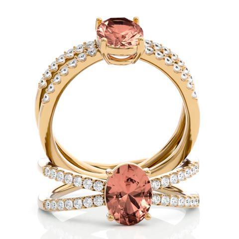 1-1/3 Carat Oval Shape Morganite and Diamond Ring In 14 Karat Yellow Gold