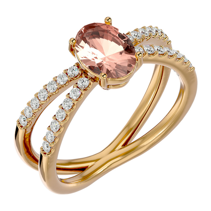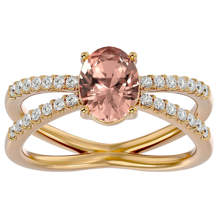 1-1/3 Carat Oval Shape Morganite and Diamond Ring In 14 Karat Yellow Gold