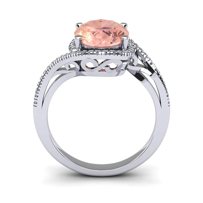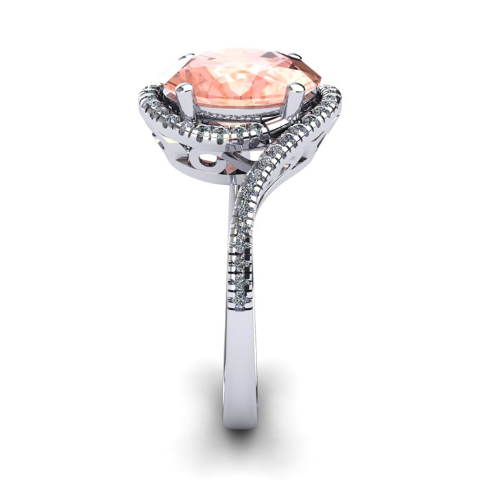 1-1/3 Carat Oval Shape Morganite and Halo Diamond Ring In 14 Karat White Gold