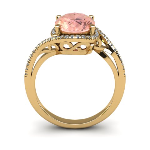 1-1/3 Carat Oval Shape Morganite and Halo Diamond Ring In 14 Karat Yellow Gold