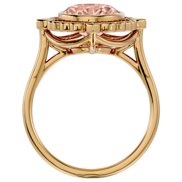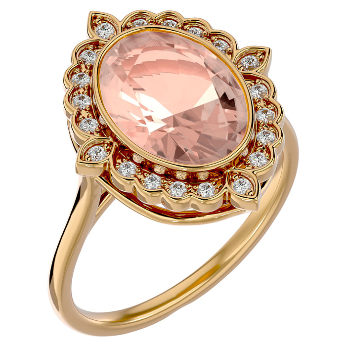 1-1/3 Carat Oval Shape Morganite and Halo Diamond Ring In 14 Karat Yellow Gold
