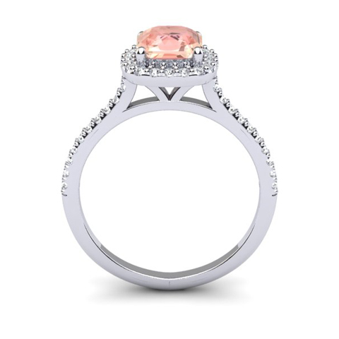 1-1/4 Carat Cushion Cut Morganite and Halo Diamond Ring In 14K White Gold