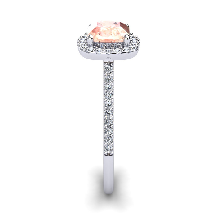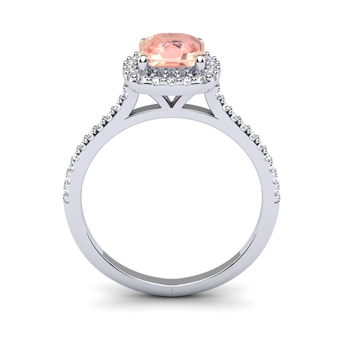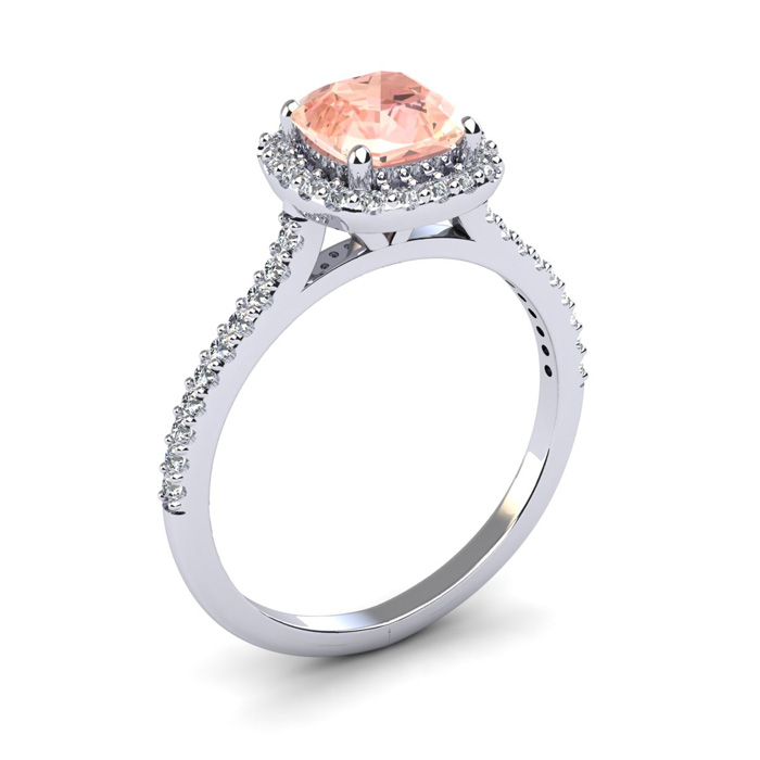 1-1/4 Carat Cushion Cut Morganite and Halo Diamond Ring In 14K White Gold