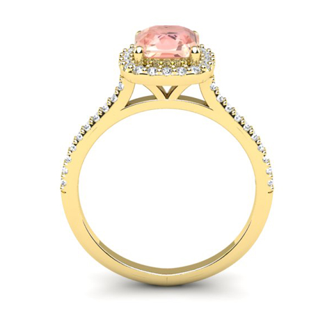 1-1/4 Carat Cushion Cut Morganite and Halo Diamond Ring In 14K Yellow Gold