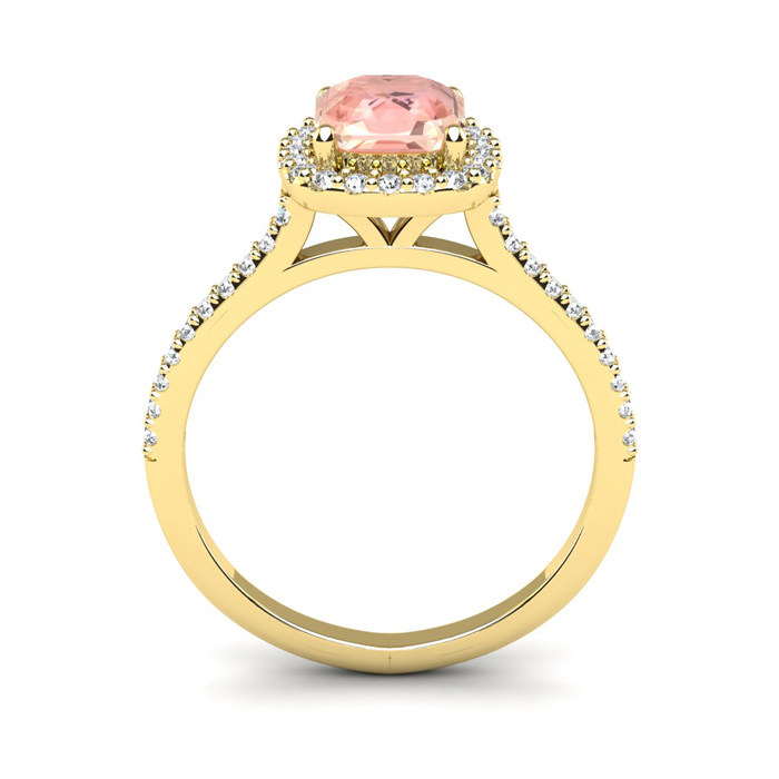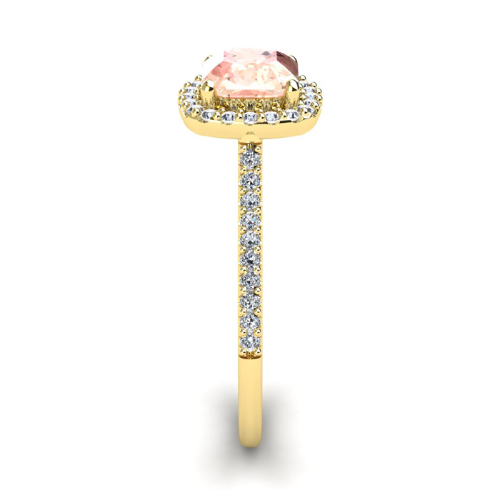 1-1/4 Carat Cushion Cut Morganite and Halo Diamond Ring In 14K Yellow Gold