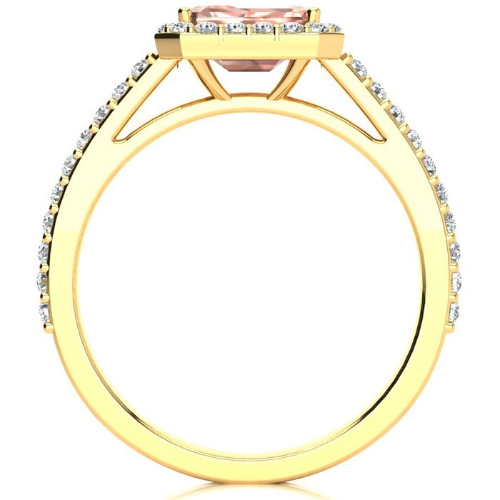 1-1/4 Carat Morganite and Halo Diamond Ring In 14 Karat Yellow Gold