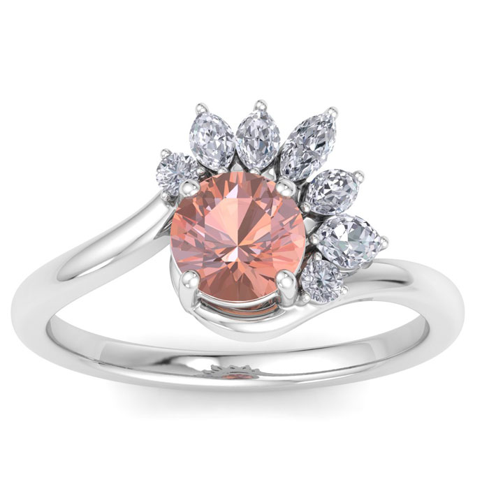Retrograde Birthstones™ 1-1/4 Carat Morganite and Marquise Crown Halo Diamond Ring In 14K White Gold