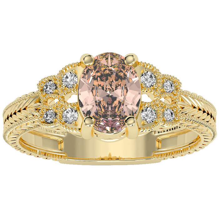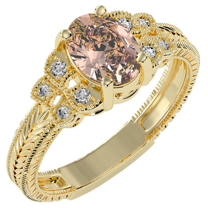 1-1/4 Carat Oval Shape Morganite and Diamond Ring In 10 Karat Yellow Gold