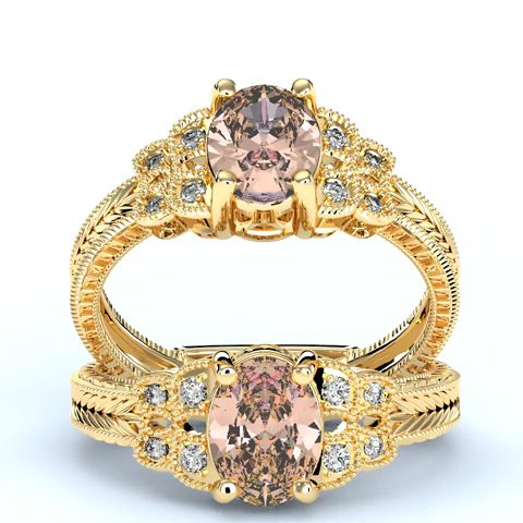 1-1/4 Carat Oval Shape Morganite and Diamond Ring In 10 Karat Yellow Gold