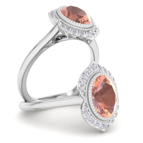 1-1/5 Carat Oval Shape Morganite and Diamond Ring In 14K White Gold