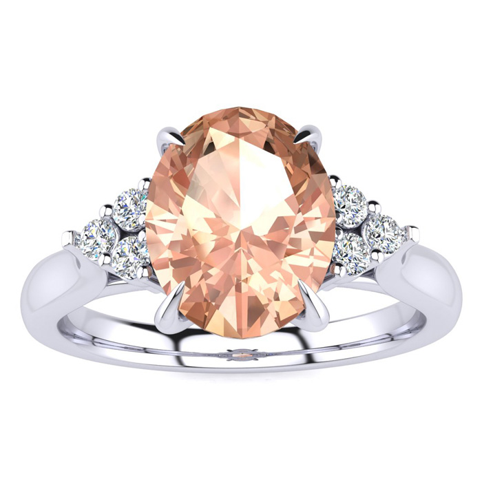 1-3/4 Carat Oval Shape Morganite and Diamond Ring In 14K White Gold