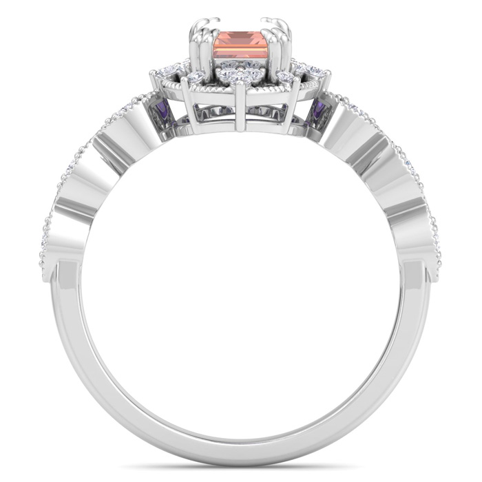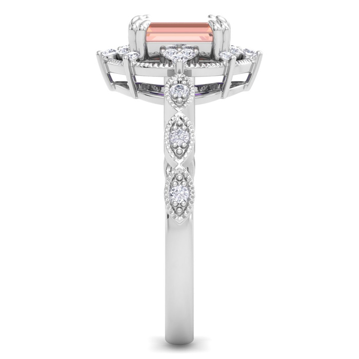 1 Carat Morganite and Halo Diamond Ring In 14K White Gold