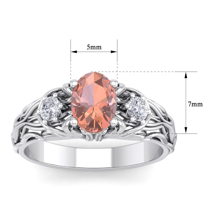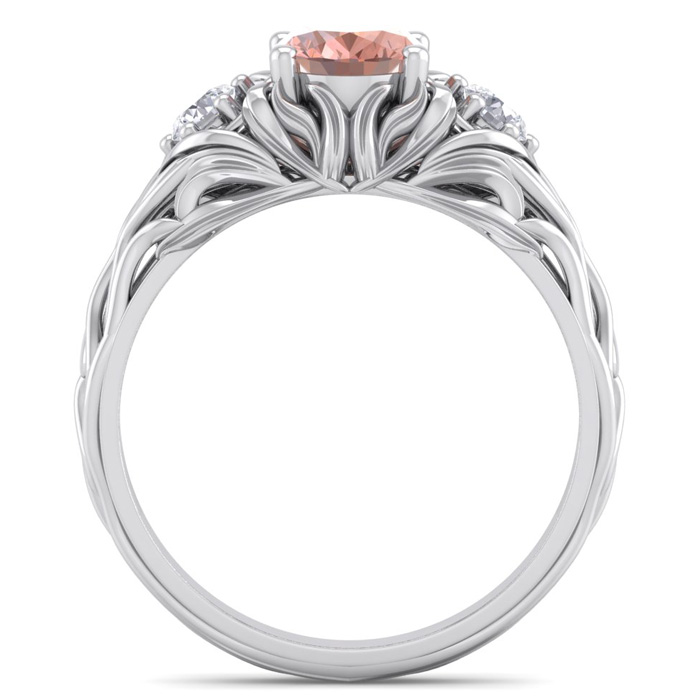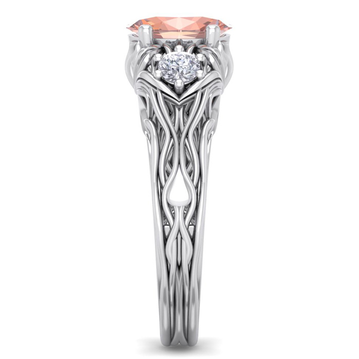 1 Carat Oval Shape Morganite and Diamond Intricate Vine Engagement Ring In 14 Karat White Gold