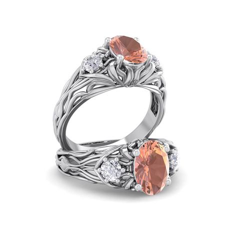 1 Carat Oval Shape Morganite and Diamond Intricate Vine Engagement Ring In 14 Karat White Gold