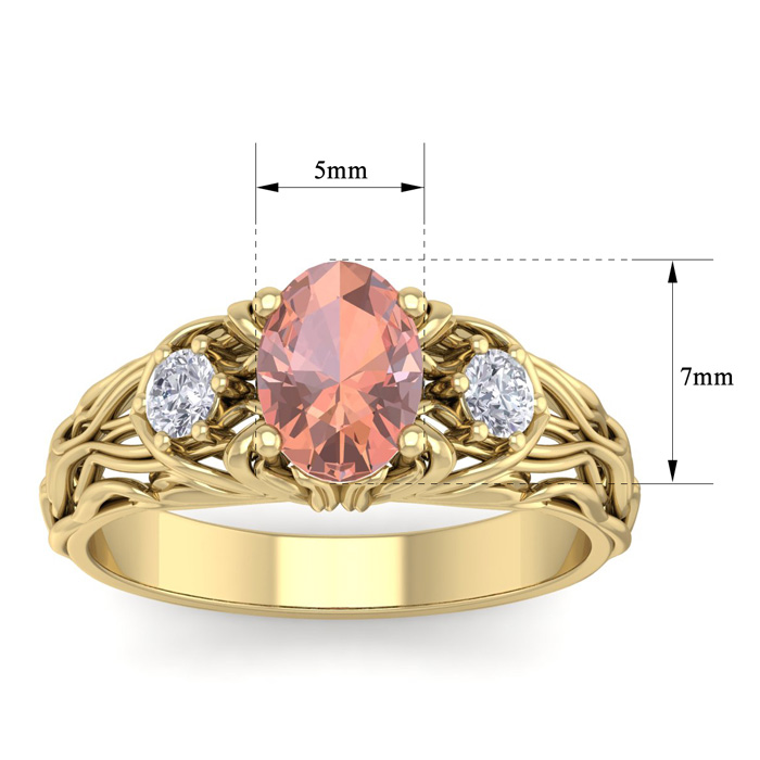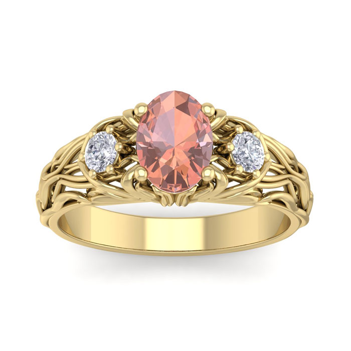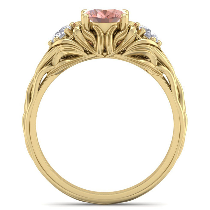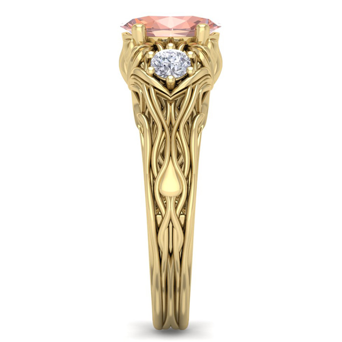 1 Carat Oval Shape Morganite and Diamond Intricate Vine Engagement Ring In 14 Karat Yellow Gold