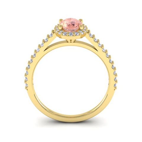 1 Carat Oval Shape Morganite and Halo Diamond Ring In 14 Karat Yellow Gold