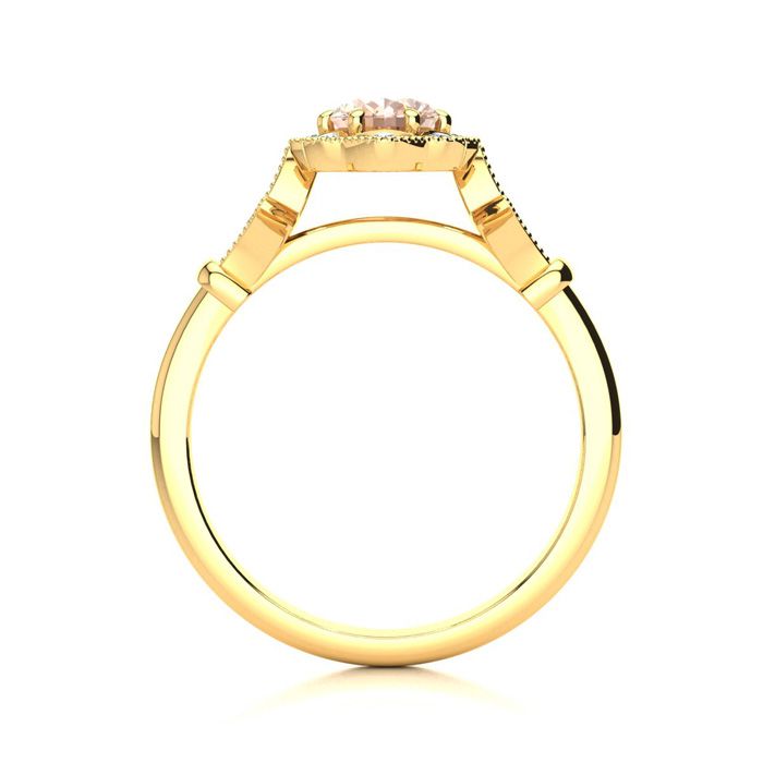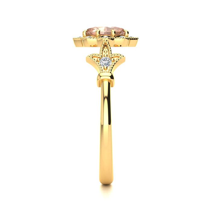 Retrograde Birthstones™ 1 Carat Oval Shape Morganite and Halo Diamond Vintage Ring In 14 Karat Yellow Gold