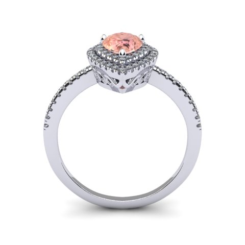 1 Carat Pear Shape Morganite and Double Halo Diamond Ring In 14 Karat White Gold