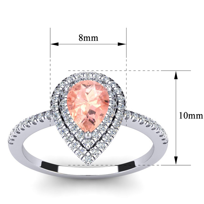 1 Carat Pear Shape Morganite and Double Halo Diamond Ring In 14 Karat White Gold