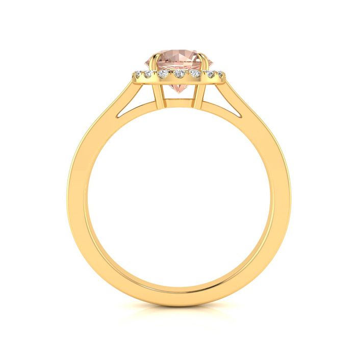 1 Carat Round Shape Morganite and Halo Diamond Ring In 14 Karat Yellow Gold