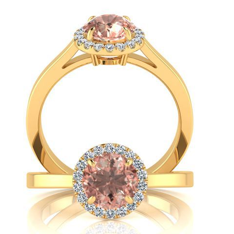 1 Carat Round Shape Morganite and Halo Diamond Ring In 14 Karat Yellow Gold