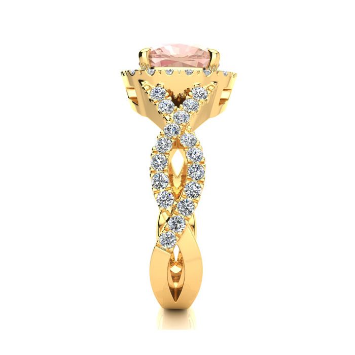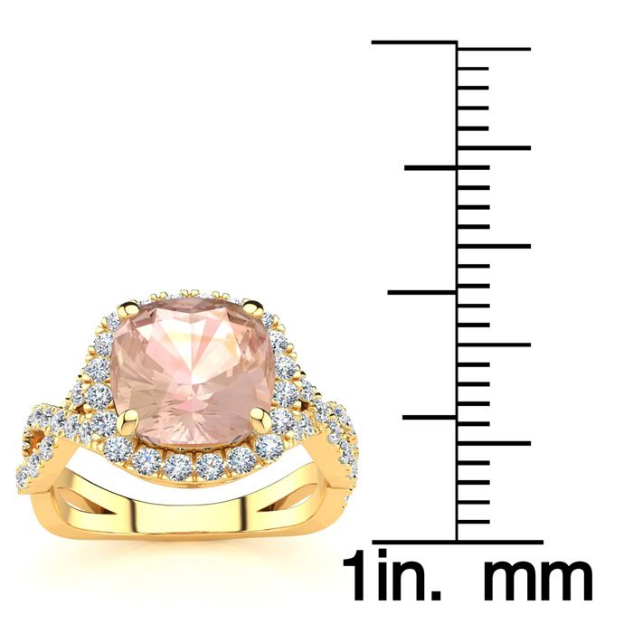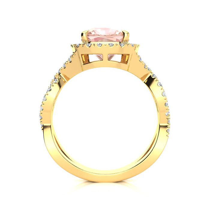 2-1/2 Carat Cushion Cut Morganite and Halo Diamond Ring With Fancy Band In 14 Karat Yellow Gold