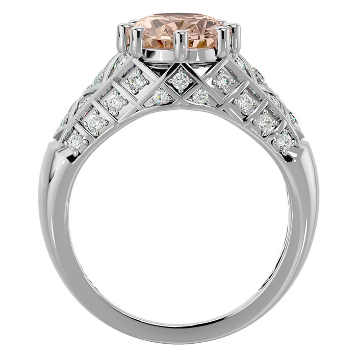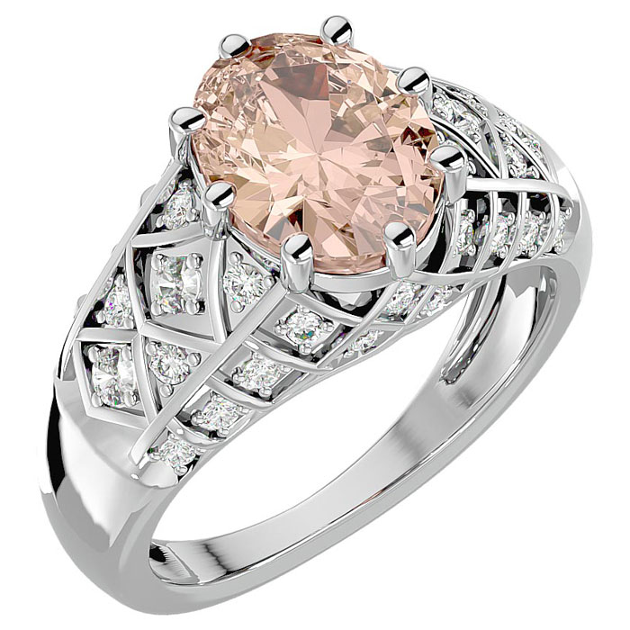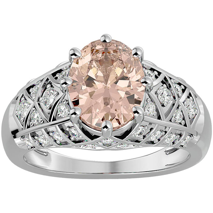 2-1/2 Carat Oval Shape Morganite and Diamond Ring In 10 Karat White Gold