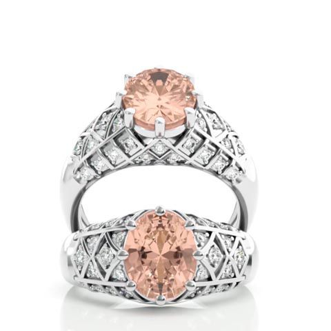 2-1/2 Carat Oval Shape Morganite and Diamond Ring In 10 Karat White Gold