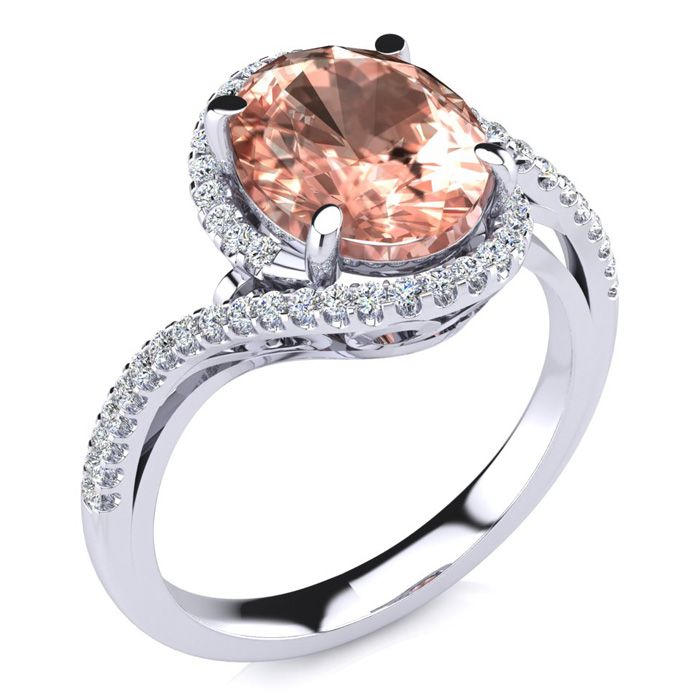 2-1/2 Carat Oval Shape Morganite and Halo Diamond Ring In 14 Karat White Gold