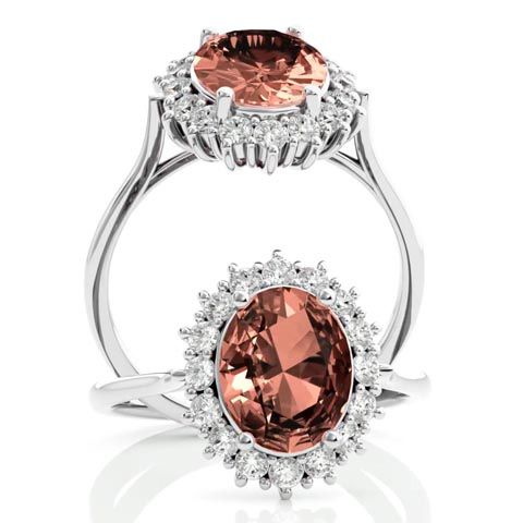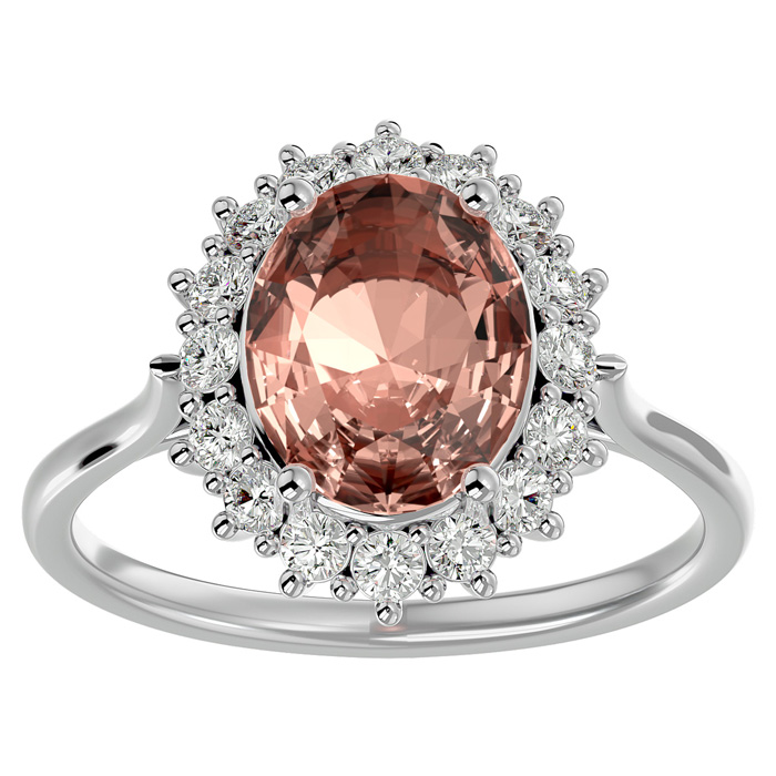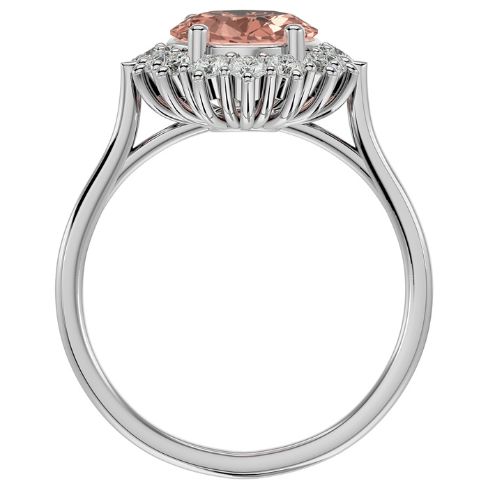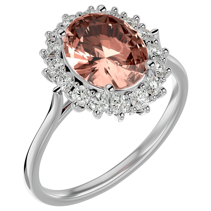 2-3/4 Carat Oval Shape Morganite and Halo Diamond Ring In 14 Karat White Gold