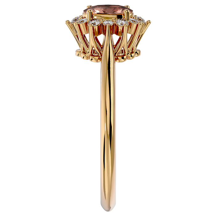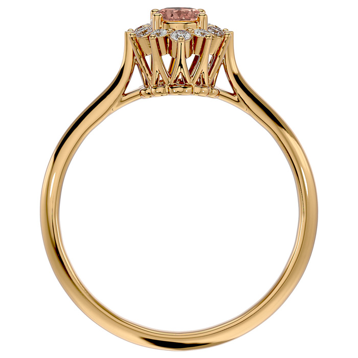 2/3 Carat Oval Shape Morganite and Halo Diamond Ring In 14 Karat Yellow Gold