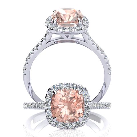 2 Carat Cushion Cut Morganite and Halo Diamond Ring In 14K White Gold