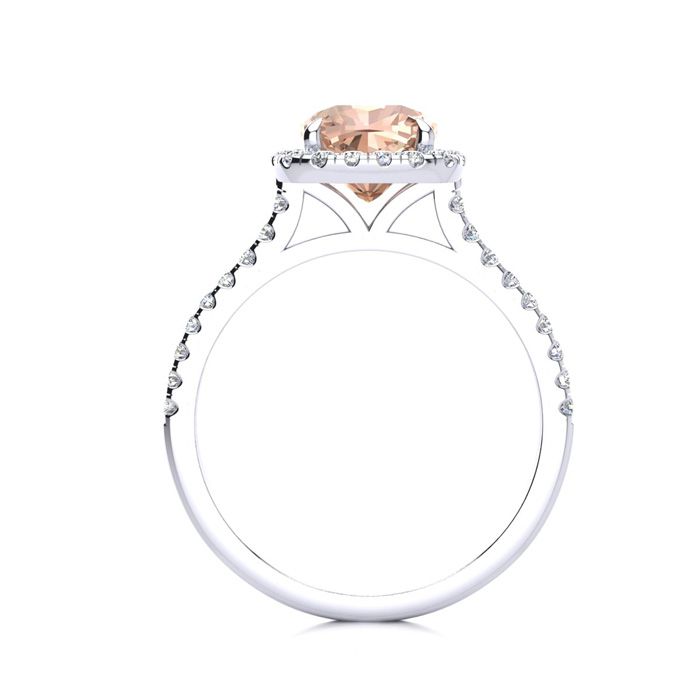 2 Carat Cushion Cut Morganite and Halo Diamond Ring In 14K White Gold