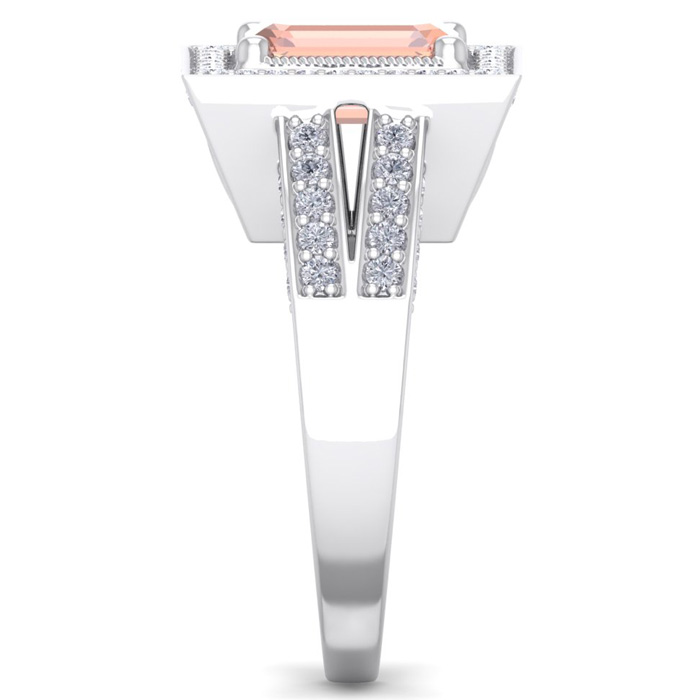 2 Carat Morganite and Halo Diamond Ring In 14 Karat White Gold