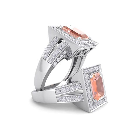 2 Carat Morganite and Halo Diamond Ring In 14 Karat White Gold