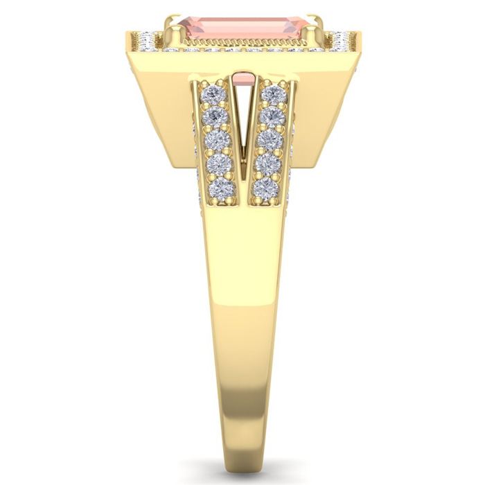 2 Carat Morganite and Halo Diamond Ring In 14 Karat Yellow Gold