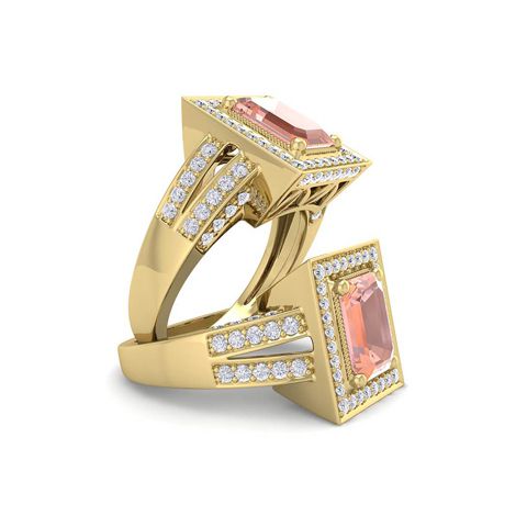 2 Carat Morganite and Halo Diamond Ring In 14 Karat Yellow Gold