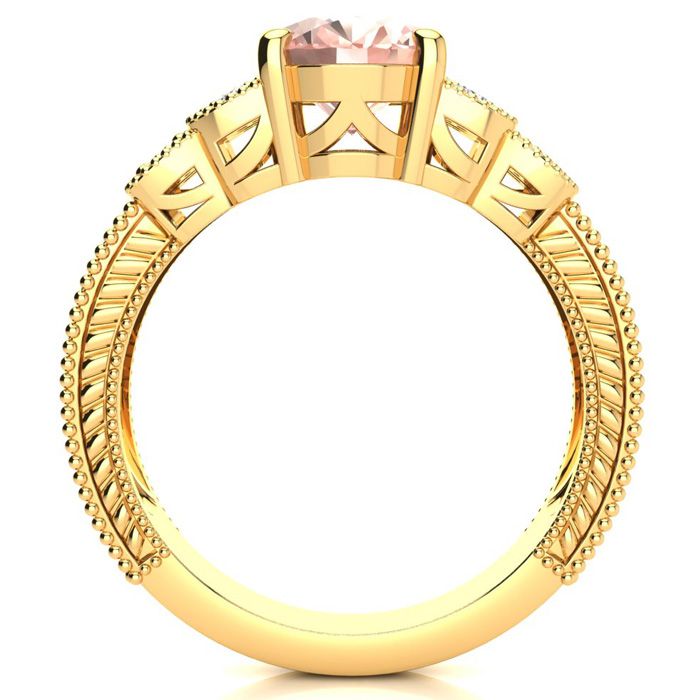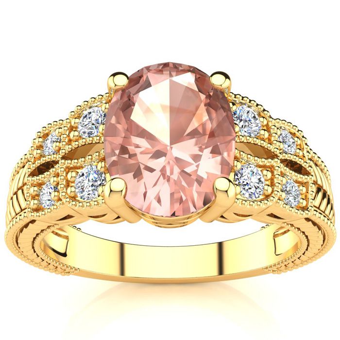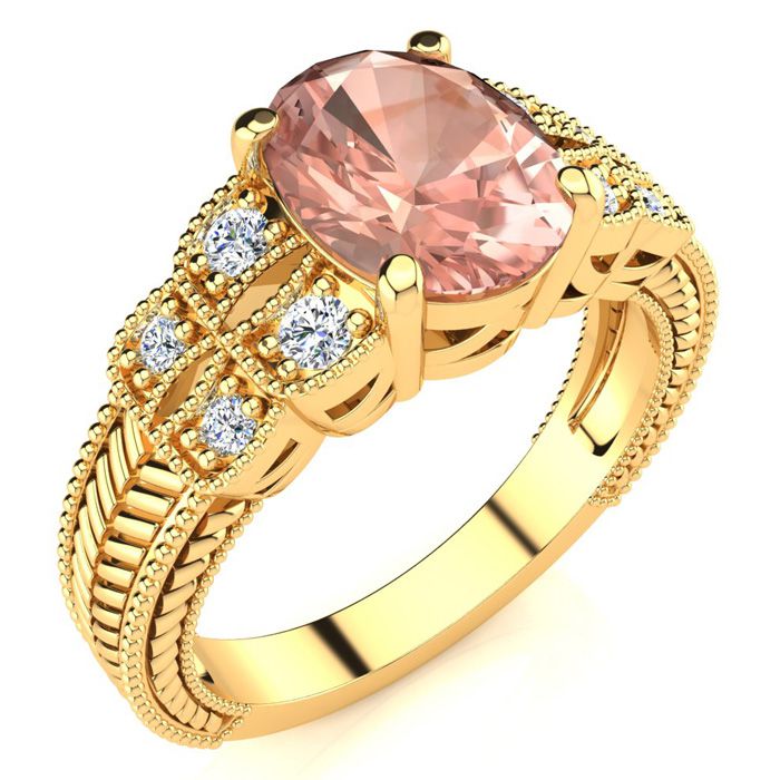 2 Carat Oval Shape Morganite and Diamond Ring In 10 Karat Yellow Gold