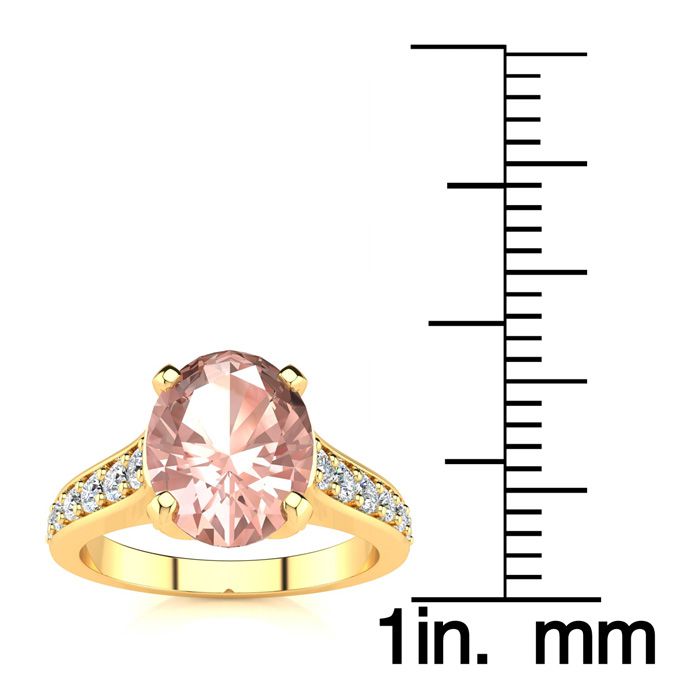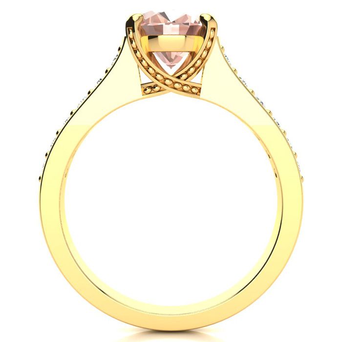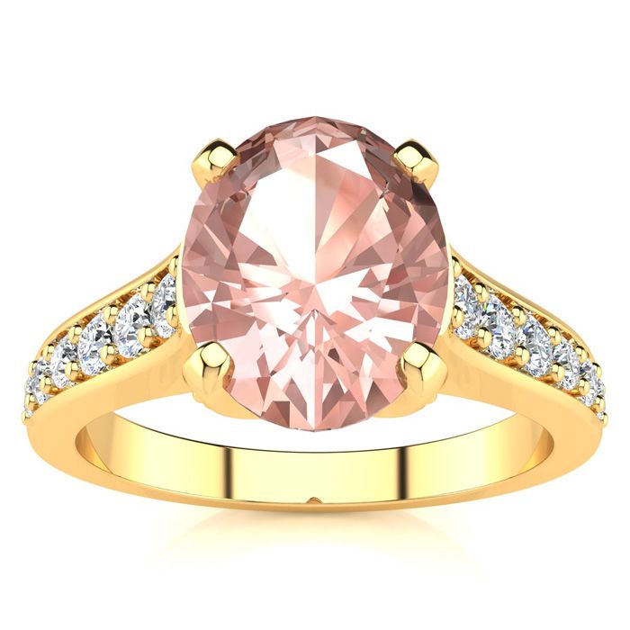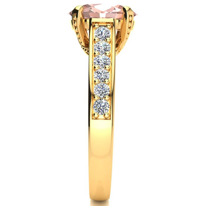 2 Carat Oval Shape Morganite and Diamond Ring In 14 Karat Yellow Gold