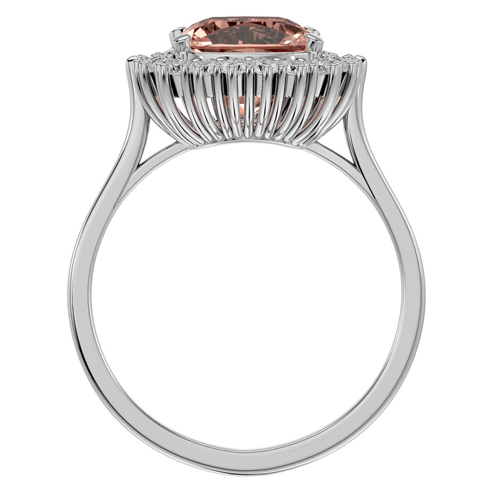 Retrograde Birthstones™ 3-1/2 Carat Cushion Cut Morganite and Halo Diamond Ring In 14K White Gold