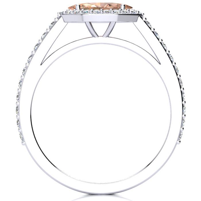 Retrograde Birthstones™ 3/4 Carat Marquise Shape Morganite and Halo Diamond Ring In 14 Karat White Gold