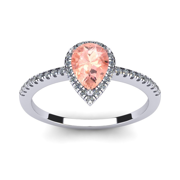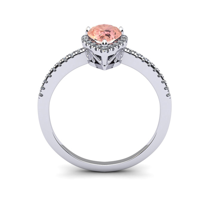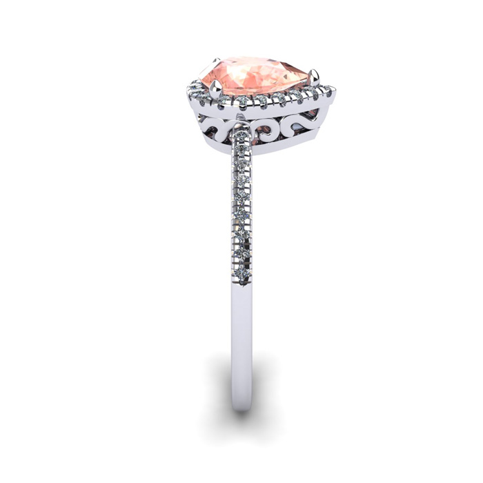 3/4 Carat Pear Shape Morganite and Halo Diamond Ring In 14 Karat White Gold