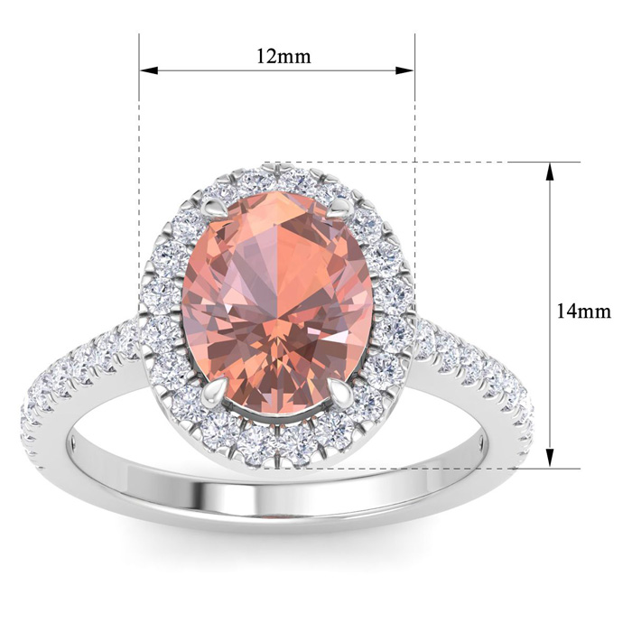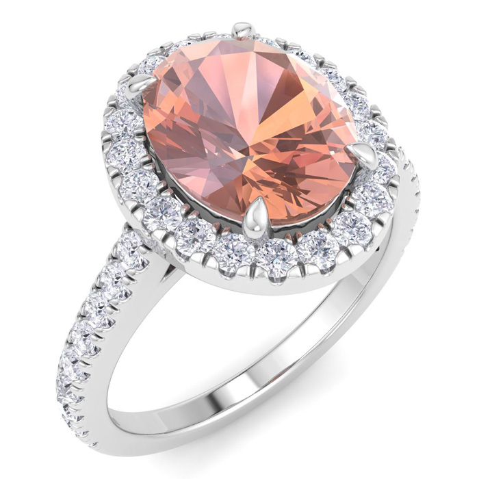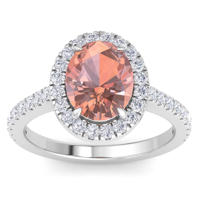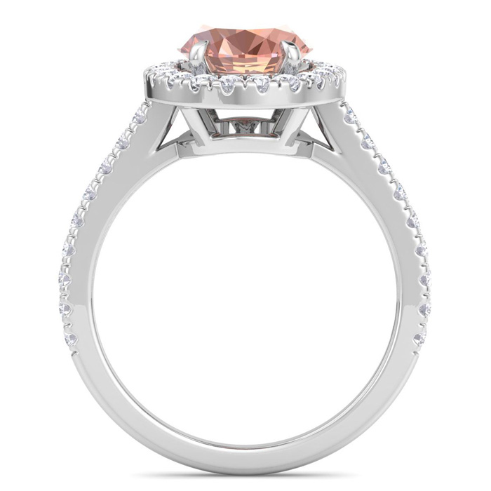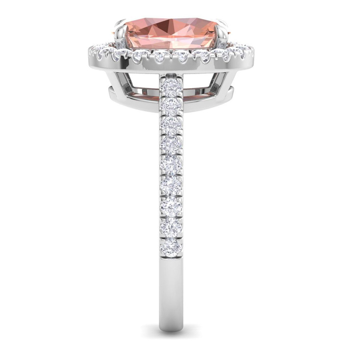 3 Carat Oval Shape Morganite and Halo Diamond Ring In 14K White Gold