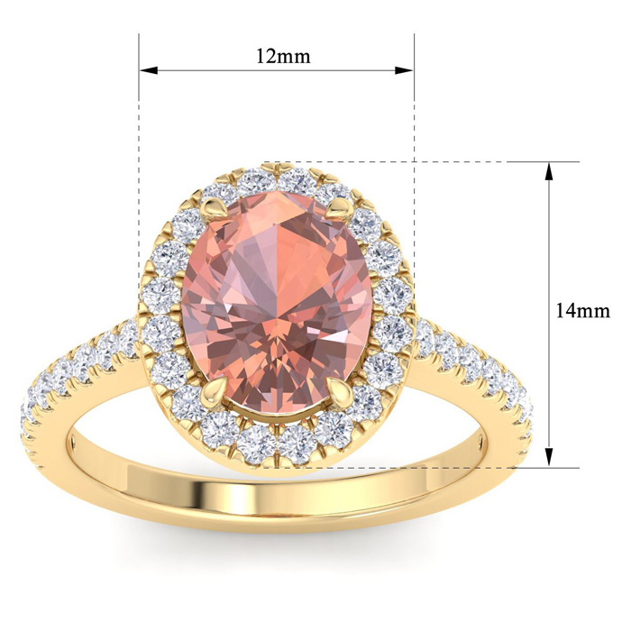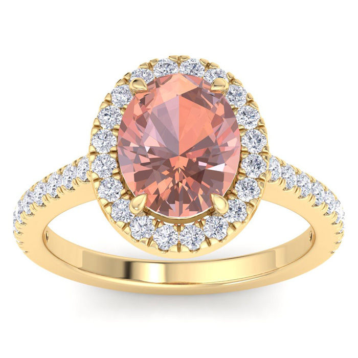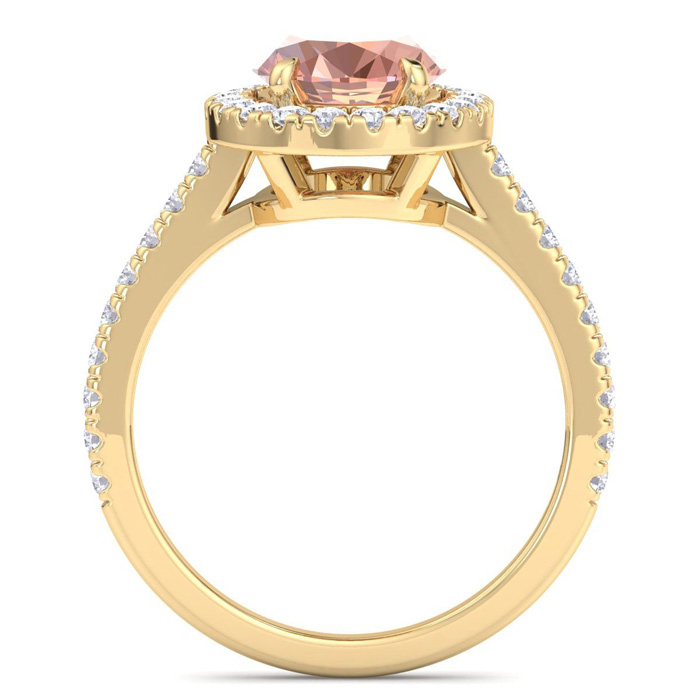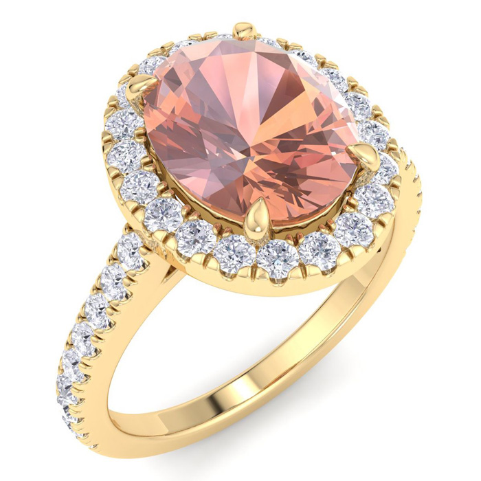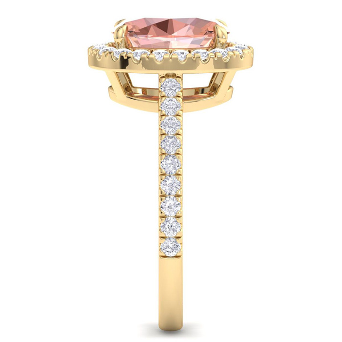 3 Carat Oval Shape Morganite and Halo Diamond Ring In 14K Yellow Gold