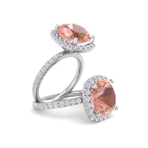 5 Carat Cushion Cut Morganite and Diamond Ring In 14 Karat White Gold