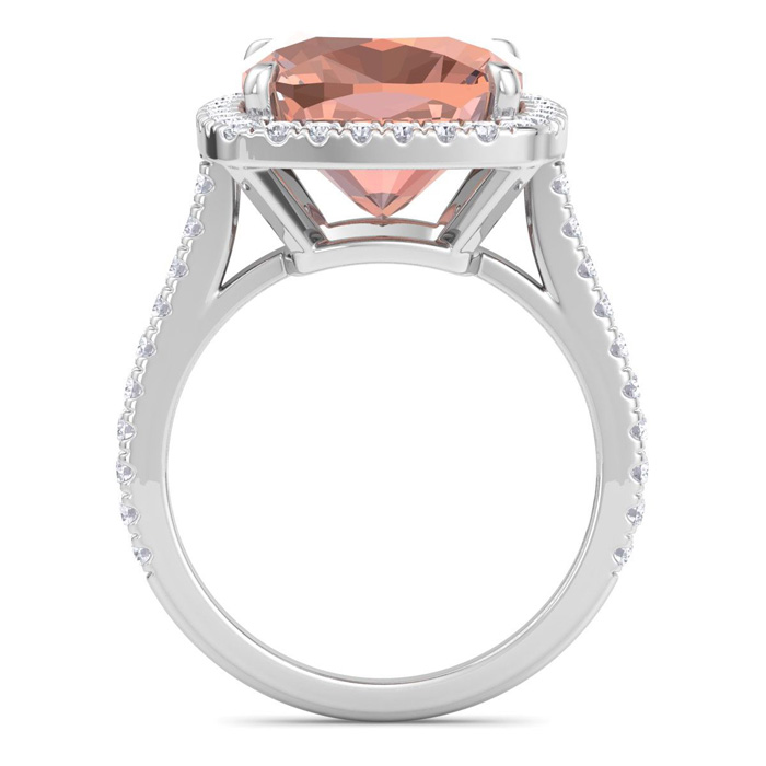7 1/2 Carat Cushion Shape Morganite and Halo Diamond Ring In 14K White Gold