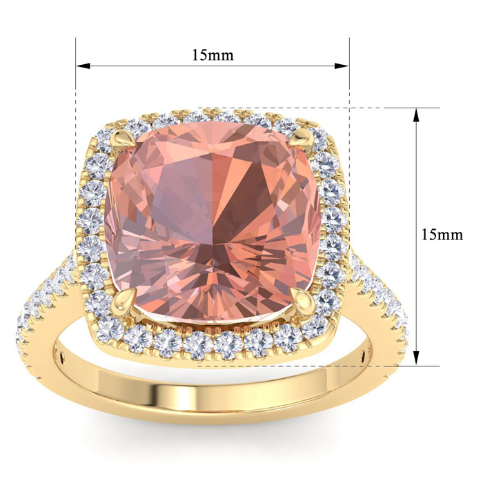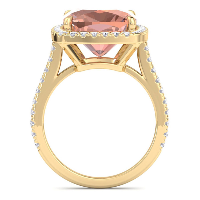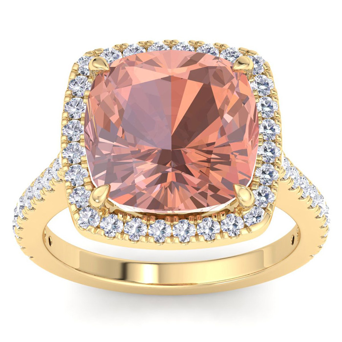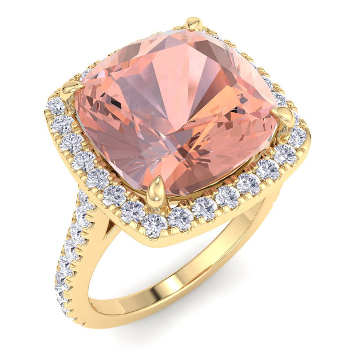 7 1/2 Carat Cushion Shape Morganite and Halo Diamond Ring In 14K Yellow Gold